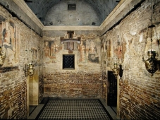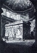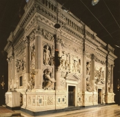A loretói Szent ház és a Bramante által fölé épített márványburkolat a Szent Ház bazilika belsejében