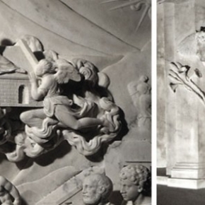 3. A Szent Ház elhelyezése a földön. A jelenet a csodás áthozatal után ábrázolja a házat Loretó földjén. Az angyalok ezekben a pillanatokban érkeznek meg a célhoz. Egyedi ábrázolás K.I.P. mester emléktáblája, ahol állatok láthatók a domboldalon, Mária szalagján pedig a következő felirat olvasható: “Vadállatokat, köztük egy egyszarvút szelídít meg a Szűz tisztasága.”