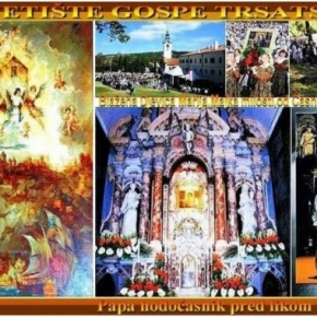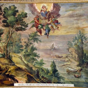 “A Szent Házat – mondja Loreto legendája - angyalok hozták Názáretből Marchiába. 1291-ben, amikor a keresztesek utolsó erődje is elesett a Szentföldön, és a hitetlenek elözönlötték a keresztény szentélyeket, az angyalok kiemelték a föléje épített, félig lerombolt Angyali Üdvözlet-bazilika romjai alól, és elhozták először Tersatóba (ma Trsat), a horvátországi Rijekától északra. De a horvátok nem voltak méltók erre az isteni ajándékra – mondja a legenda. Amikor kérkedni kezdtek vele, ez annyira nem tetszett az angyaloknak, hogy három és fél év múlva, 1294. december 9-én továbbvitték, át az Adria másik partjára, Recanati közelébe. A csoda emlékére és a néhány ottmaradt kő tiszteletére a horvátok fölépítették a Szent Ház pontos mását, mely a századok folymán Horvátország legfontosabb Mária-kegyhelyévé vált. (…)