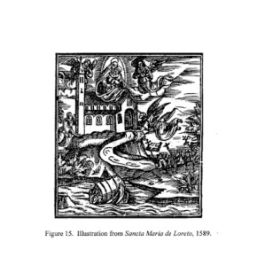 Ezeknek a legendáknak azonban, bár elbűvölőek, van egy szépséghibájuk, mégpedig az, hogy nincs korabeli bizonyítékuk. (...) Egy bizonyos Rinolduccino azt vallotta, hogy a nagyapjától hallotta, A Szent Ház "a tenger hullámain, mint egy hajó" érkezett Loretóba. 1485-ben a tudós Giovanni Battista Petrucci is megállapította, hogy a Szent Házat Jeruzsálemből "erőszakkal" távolították el, átkelt a tengeren, és először a horvátok, majd Marchia lakóinak birtokába került, angyali közreműködés nélkül."